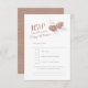 RSVP presenta dos conos de pino / coníferas con follaje de aguja dibujado a lápiz y coloreado en gris y marrón sobre un fondo blanco, el reverso tiene un efecto de lienzo marrón en la parte posterior. Ideal para la cocoordinación con bodas marrones y grises o para boda de temática rústica de invierno con temática de naturaleza. Parte del conjunto de bodas de dibujo de cono de pino. Edite esta invitación RSVP con sus nombres, fechas y frases. Dibujo y diseño único de Sarah Trett.