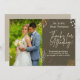 Esta foto de la pareja de bodas, gracias a la tarjeta plana, incluye una hermosa foto boda de la novia y el novio. Ambos están vestidos con su atuendo boda y sonriendo mientras se miran entre ellos. El interior de la tarjeta está en blanco y se puede personalizar con un mensaje personalizado. Fácil plantilla le permite añadir su foto y detalles a esta tarjeta.