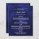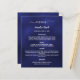 Un menú boda clásico. Un fondo azul marino. El color azul es desigual. Texto blanco. Personalice y agregue su nombre, fecha y menú. Puede añadir más texto, fotos en la parte posterior. 1 hoja = 1 borde impreso del menú a borde.