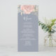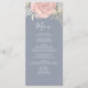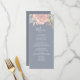 Un elegante y sencillo menú boda con un guión elegante de caligrafía, flores y vegetación de rosa rosa rosa rosa puro, un fondo azul, la perfecta decoración de la recepción