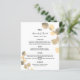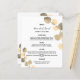 Personalice y agregue sus nombres, fecha y el menú boda. Fondo blanco, decorado con brotes de eucaliptos dorados.