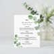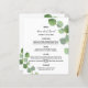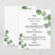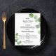 Personalice y agregue sus nombres, fecha y el menú boda. Fondo blanco, decorado con vegetación eucaliptos, brotes.