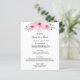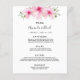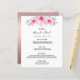 Una elegante carta boda tropical. Flores rosas, hibiscos florales como decoración. Delante: fondo blanco. Plantillas para los nombres, fecha y menú boda. Letras de color negro. Atrás: oro Rosa, rosa polvoriento imitación de fondo metálico.