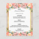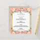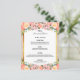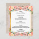 Una elegante carta de boda estilo bohemia. Rosas color agua rosa y lujoso como decoración. Plantillas para los nombres, fecha y menú boda. Un marco de oro falso y una burpía rústica como fondo. Letras de color negro. Atrás: el rústico aroma beige como fondo.