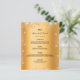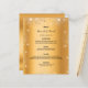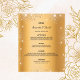 Una carta boda elegante y glamurosa. Personalice y agregue sus nombres, fecha y el menú boda. Fondo de aspecto metálico de oro falso, decorado con polvo falso purpurina.