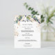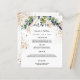 Carta elegante, moderna y boda. Un fondo blanco decorado con vegetación eucaliptos y hojas doradas. Lugares purpurinas de imitación dorada. Personalice y agregue sus nombres, fecha y el menú boda. Letras de color negro. La palabra Menu (Menú) se escribe con un guión a la moda con letras a mano con chispas. Parte posterior: fondo blanco y gotas purpurinas falsas doradas. En nuestra tienda hay disponibles tarjetas de mesa y tarjetas de plaza que coinciden.