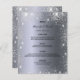 Una carta boda elegante y glamurosa. Personalice y agregue sus nombres, fecha y el menú boda. Fondo de aspecto metálico de plata falsa, decorado con polvo falso purpurina.