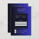 Las tarjetas RSVP de boda azul mínimo son una opción popular para las parejas que prefieren un diseño limpio y elegante para su papelería boda. El color principal utilizado en estas tarjetas RSVP es el azul. La sencillez de la combinación de colores contribuye a un mínimo conjunto. Aunque el diseño es mínimo, todavía queda espacio para el toque personal. Las parejas pueden agregar sus nombres, monogramas y otros pequeños elementos de diseño que reflejan su estilo y tema boda. Las tarjetas RSVP suelen enviarse con un sobre azul minimalista que coincida. El sobre puede tener un diseño sutil o un pequeño detalle que complemente la estética general de la tarjeta RSVP. Al elegir sus tarjetas RSVP de boda azul mínimas, es esencial tener en cuenta el tema del boda y el diseño general del papel para asegurar la consistencia. Recuerde que las tarjetas RSVP son parte integrante de su suite de invitados a la boda, por lo que asegúrese de que se alinean con el estilo y el tono que desea establecer para su día especial.