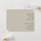 Comparte la alegría de tu próxima celebración con estas bodas mínimas, excepto las tarjetas de cita. Diseñadas con una estética limpia y atemporal, se centran en la sencillez y la elegancia, haciéndolas perfectas para las parejas que aprecian el estilo moderno y sobrio. Fácilmente personalizable con sus nombres, fecha de boda y detalles, estas tarjetas son una hermosa manera de anunciar su día especial y fijar el tono para su boda.