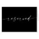 Añada un toque moderno y elegante a su ceremonia boda o recepción con este minimalista cartel "Reservado" que incluye un guión elegante sobre un fondo negro. Diseñado para combinar sin esfuerzo con cualquier tema boda -desde la clásica corbata negra hasta los eventos minimalistas, modernos o rústicos-, este versátil signo es ideal para reservar asientos para la familia, VIP o la fiesta de boda. El diseño sencillo y monocromo es atemporal y sin temporadas, lo que lo convierte en un lugar perfecto para los bodas en cualquier estilo o temporada. Disponible como signo impreso o descarga digital para imprimir fácilmente en casa o en una tienda local.