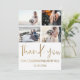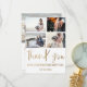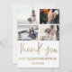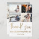 Tarjeta moderna minimalista de agradecimiento. Con elegante caligrafía grande en hoja de oro falso y espacios para agregar 4 de tus fotos especiales de boda. Fácil y divertido personalizar para crear tus propias tarjetas de 'Agradecimiento' únicas.