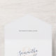 Presentamos nuestra última creación, la invitación Tri-Fold moderna, una obra maestra de la elegancia contemporánea. Este innovador diseño presenta detalles muy bien inscritos en una tipografía de escritura con letras a mano y moda en un sofisticado azul marino, armoniosamente equilibrado con un tipo de letra serif clásico. Cada golpe de esta maravilla triple es personalizable, lo que le permite infundir los detalles de su boda y devolver la dirección con un toque personal. Ideal para el ambiente de una boda tropical en la playa y la sofisticación refinada de una celebración lujosa y elegante. Descubra un mundo de exquisitos diseños de Victoria Grigaliunas en www.zazzle.com/dotellabelle, donde lo moderno se encuentra con la elegancia.