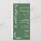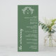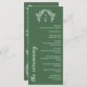 Elegante programa de bodas 9x4 en verde helecho con un monograma laurel en forma de arco y hermosos tipos de letra en blanco. Programa de bodas verde feroz con un monograma de vegetación, las ramas con forma de arco, y hermosas fuentes. Programa de boda plano en verde con un elegante monograma en blanco y hermosos tipos de letra y detalles verdes en blanco contra un fondo verde.