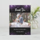 Celebra tu día especial y expresa tu más sentida gratitud con nuestras tarjetas de Personalizado para la boda de fotos, elegantemente diseñadas con un sofisticado fondo negro y adornadas con un falso purpurina morado. Perfecto para compartir tus recuerdos bodas favoritos, estas tarjetas son elegantes y personales, ofreciendo una manera única de agradecer a tus invitados. Personaliza y agrega tu foto y nota de agradecimiento.