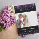 Una moderna tarjeta fotográfica de agradecimiento al boda. Un fondo negro decorado con purpurina falso violeta, chispas. Personaliza y agrega tu foto y nota de agradecimiento.