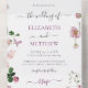 Una invitación a la boda, con un impresionante arreglo de flores silvestres en tonos violeta y rosa, complementado con un verde exuberante y acentuado por una caligrafía elegante, es una auténtica obra de arte. Las pinceladas de la pintura acuarela crean un ambiente suave y onírico, mientras que los detalles intrincados de las flores silvestres y la vegetación hacen que el diseño parezca a la vez atrevido y delicado. Los colores violeta y rosa se mezclan perfectamente con los verdes naturales, creando una bonita y armoniosa combinación de colores que sin duda impresionará. La caligrafía elegante aporta un toque sofisticado, añadiendo un toque de elegancia refinada al diseño general. Esta moderna invitación a la boda acuática es el epítome de la elegancia y la belleza natural, lo que la convierte en la elección perfecta para parejas que deseen hacer una declaración con sus invitaciones a la boda. Establece el tono para una celebración boda romántica e inolvidable, y seguro que dejará una impresión duradera en todos los que la reciban.Hay artículos coincidentes disponibles. Consulta nuestros otros elementos de esta colección. https://www.zazzle.com/collections/watercolor_wildflowers_purple_pink_collection-119810120149791613