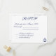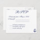 Boda náutica azul marina RSVP postal con nombres y texto de personalizable