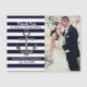 Añade tu foto de boda a este boda de temas náuticos gracias imán. El diseño incluye rayas marinas y blancas y un ancla de plata.