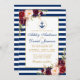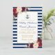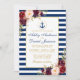 Boda Náutico Bandas Azules Color de agua Borgoña Marsala Invitación de oro Floral