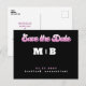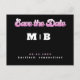 Monograma rosado y negro de los años 70 Guardar la fecha. Boda. Nombres primero y último. Divertido. Postal.