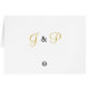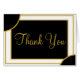 Color dorado Gracias guión elegante contra fondo negro. Esquinas geométricas de imitación de flap de vieiras. Personalice el revés con las Iniciales Monogrammed Bride y Groom. Escriba un mensaje especial de agradecimiento del boda por cada tarjeta y agréguela por separado al carrito de la compra. O bien, borra texto para dejar en blanco dentro para escribir a mano tu propia foto especial gracias por un toque personal. Diseños de TamiraZDesigns.