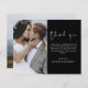 Boda de presupuesto Gracias Tarjetas que tienen una foto en el frente y en la parte de atrás. Las tarjetas de agradecimiento contienen una moderna tipografía de escritura cursiva con letras a mano que son elegantes, simples y modernas para usar después de la celebración del día de la boda.
