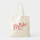 Bella y elegante escritura de tipografía rosa, corazón rojo, elegante, delgado, bolsa de algodón para la novia para ducha de novia, despedida de soltera, boda.