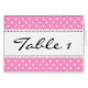 Tarjetas bodas con diseño de puntos de polka rosa elegante. Color del fondo del personalizable para que coincida con el tema boda. Tarjetas de notas para ayudar a los invitados a encontrar su mesa. Ver nuestra tienda para diseños más elegantes de mesa de bodas.