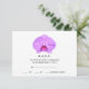 Un rsvp de boda con una imagen inspirada en una acuarela de una orquídea morada con un texto gris oscuro debajo. El fondo es blanco.