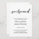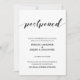 Elegante tarjeta de postergación de fecha de boda manuscrita en blanco y negro.