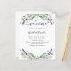 Marco blanco y elegante, decorado con flores de lavanda, flores y vegetación eucaliptica. Personalice y agregue sus nombres y la cronología del día de la boda. 1 hoja = 1 calendario/programa