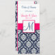 Programas de Servicio de Iglesia de personalizable. Boda programa de iglesia Hot Pink y Navy Blue Damask. Personalizar con su información personal e información de la ceremonia.