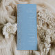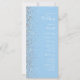 El borde izquierdo de este elegante y moderno programa de bodas presenta un diseño purpurina de imitación plateado. El texto del personalizable combina la escritura a mano en blanco, las fuentes de copperplate y cursiva en un fondo azul bebé pastel.