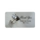 Gracias a sus invitados por asistir a su día especial cuando coloquen la etiqueta de los elegantes Anillos de Boda Gracias a los favores de la fiesta en su fiesta de compromiso, ducha de novia o matrimonio. Este pegatina de etiquetas de agradecimiento de boda personalizado de bonito presenta una fotografía de cierre de un anillo de compromiso de boda de diamantes redondo y una banda de boda con fondo de tul blanco.