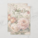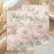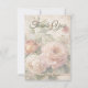 Esta tarjeta de agradecimiento para boda atemporal presenta suaves rosas estilo vintage en tonos rosados, marfil y melocotón superpuestas sobre un fondo antiguo desvanecido con texturas botánicas sutiles. El elegante "Gracias" en escritura clásica verde salvia añade un toque final elegante al frente, mientras que el reverso incluye una nota sincera de agradecimiento de la pareja. Perfecta para bodas de jardín, ceremonias de primavera u otoño, y celebraciones románticas con estética clásica o rústica.