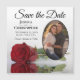 Estos hermosos y florales magnéticos modernos ahorran el área de las tarjetas de cita una forma maravillosa para que sus amigos y familia sepan de su próximo boda. Tienen un diseño magnífico, romántico y elegante, con una única rosa roja de tallo largo reflejando en un estanque de agua con olas y ondas y una foto en forma de oval sobre un fondo blanco clásico. La leyenda dice Guardar la fecha con espacio para los nombres, la fecha y la ubicación.