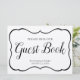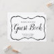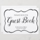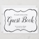 "Por favor, firma nuestro libro de invitados", cartel personalizado en plata con marco negro y texto.