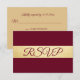 Tarjetas de respuesta de boda elegantes y modernas con foil de oro falso y marsala burdeos. El color de fondo se puede cambiar. Plantillas editables: agregue su texto. Contacte al diseñador para otras variaciones. Se encuentra en la colección de bodas 'FALL IN LOVE - Burgundy'.
