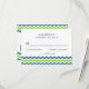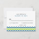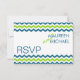 Tarjetas de respuesta boda modernas. Tarjetas RSVP con tiras de chevron de dos lados. Tonos náuticos de azul verde azulado y verde limón sobre blanco. Tomas de respuesta de boda de patrones Zig-zag con tipografía minimalista simple oscilante sans-serif. Personalizar el texto, el tipo, el color, el estilo, el color de fondo o mueve las franjas de zigzags de los dientes de la sierra para crear más espacio si es necesario. Se puede personalizar tal cual, o mover cosas para crear hermosos kits de invitación a bodas hágalo usted mismo con nuestras invitaciones coincidentes.