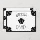 Diseño Art Deco de tarjetas rsvp para bodas en blanco y negro. Personalizar esta tarjeta rsvp de boda en blanco y negro con los detalles de su boda. Si necesita ayuda para personalizar, póngase en contacto con nosotros a través del enlace de esta página. Tarjeta rsvp de boda personalizada de diseño deco de arte blanco y negro