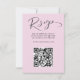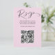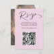 Esta moderna tarjeta RSVP combina elegancia y comodidad con tipografía limpia y contemporánea sobre fondo rosa rubor femenino. Una sección dedicada de código QR permite a los clientes acceder rápidamente a la información de su sitio web boda o RSVP, lo que simplifica el proceso de respuesta. El reverso ofrece un toque personal con espacio para la foto y el monograma, añadiendo un detalle único e inolvidable. Completamente personalizable, este diseño elegante combina el minimalismo con la sofisticación, asegurando que se complemente con cualquier estilo boda, al tiempo que le ayuda a reunir respuestas con facilidad y estilo.