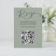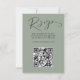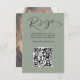 Esta moderna tarjeta RSVP combina elegancia y comodidad con tipografía limpia y contemporánea sobre un fresco fondo verde sabio. Una sección dedicada de código QR permite a los clientes acceder rápidamente a la información de su sitio web boda o RSVP, lo que simplifica el proceso de respuesta. El reverso ofrece un toque personal con espacio para la foto y el monograma, añadiendo un detalle único e inolvidable. Completamente personalizable, este diseño elegante combina el minimalismo con la sofisticación, asegurando que se complemente con cualquier estilo boda, al tiempo que le ayuda a reunir respuestas con facilidad y estilo.