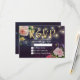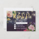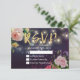 Plantillas de tarjetas de respuesta RSVP para bodas - Elegante escritura de Relieve metalizado dorado Faux, rosas color de agua floral rosada y luces de cadena sobre fondo de la barra de esparcido morado. ¡Un Diseño Perfecto Para Tu Gran Día! Todos Los Estilo De Texto, Los Colores Y Los Tamaños Se Pueden Modificar Para Ajustarse A Sus Necesidades.