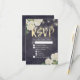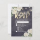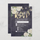 Plantillas de tarjetas de respuesta RSVP de bodas - Flores de hidrangea blanca elegantes y luces de cuerdas en fondo de línea floral azul de la marina de época. Un diseño perfecto para tu gran día. ¡Todo el estilo de texto, colores, tamaños se pueden modificar para adaptarlo a sus necesidades!