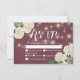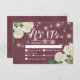Plantillas de tarjetas de respuesta RSVP - Elegante color de agua blanco adorable Hidrángea Flores y cadenas de luz sobre fondo rojo de Borgoña. ¡Un Diseño Perfecto Para Tu Gran Día! Todos Los Estilo De Texto, Los Colores Y Los Tamaños Se Pueden Modificar Para Ajustarse A Sus Necesidades.