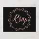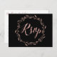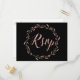 Bodas postales RSVP con efecto Relieve metalizado oro rosa floral floral y texto personalizado, impreso en fondo negro
