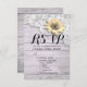 Plantillas de tarjetas de respuesta RSVP para bodas - Luces de encaje, girasol y cuerdas antiguas sobre fondo de madera rústica. ¡Un Diseño Perfecto Para Tu Gran Día! Todos Los Estilo De Texto, Los Colores Y Los Tamaños Se Pueden Modificar Para Ajustarse A Sus Necesidades.
