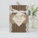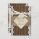 Boda rústica, encaje beige blanco cerca oscura madera y arpillera, boda de campo, invitación de boda de arpillera, invitación de boda de arpillera