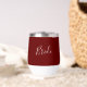 Borgoña personalizada, guión, novia, boda. Moderno, elegante, moderno vaso de vino.