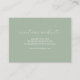Hágale saber a todos su sitio web boda con estas simples tarjetas de gabinete. Presentan una caligrafía tipográfica con tus detalles en un sans clásico en blanco sobre un fondo verde sabio. La tarjeta se invierte a un color sólido que coincida. Para ver el conjunto completo de artículos de papelería boda, visite www.zazzle.com/dotellabelle